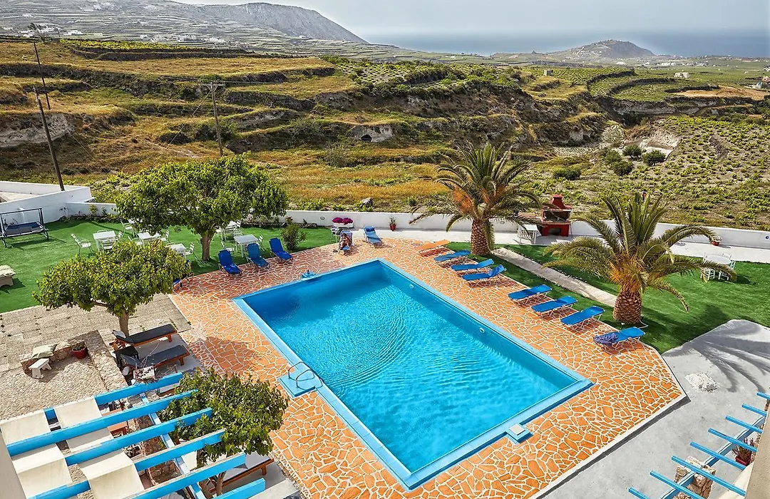 Das 3-Sterne-Zorbas Hotel Santorini Pýrgos liegt in 25 Gehminuten Entfernung von der Caldera von Santorin und bietet Unterstützung bei Tourenplannung/Ticketkauf an. Das Hotel mit 6 Zimmern verfügt auch über einen Swimmingpool.